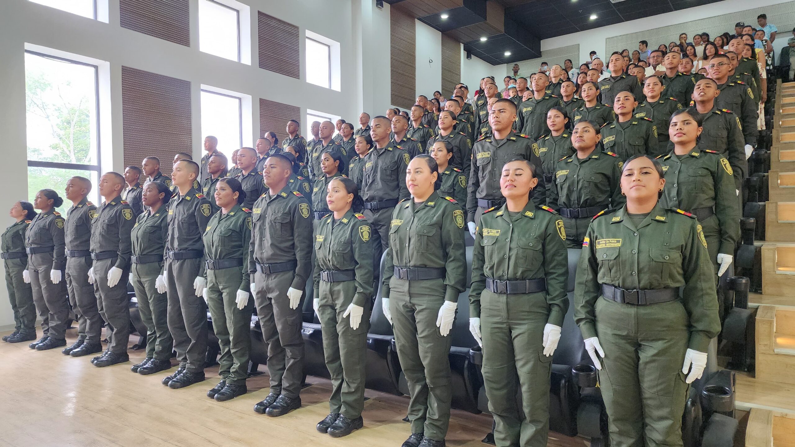 Sahagún, Córdoba. La ceremonia académica fue presidida por el señor mayor Alejandro Manuel Martínez Walker, comandante del Distrito de Policía Sahagún, quien tomó el juramento de bandera de los 70 nuevos auxiliares de Policía (37 hombres y 33 mujeres), así mismo, enalteció la presencia de los asistentes al evento, quienes llegaron desde varias partes del departamento.
