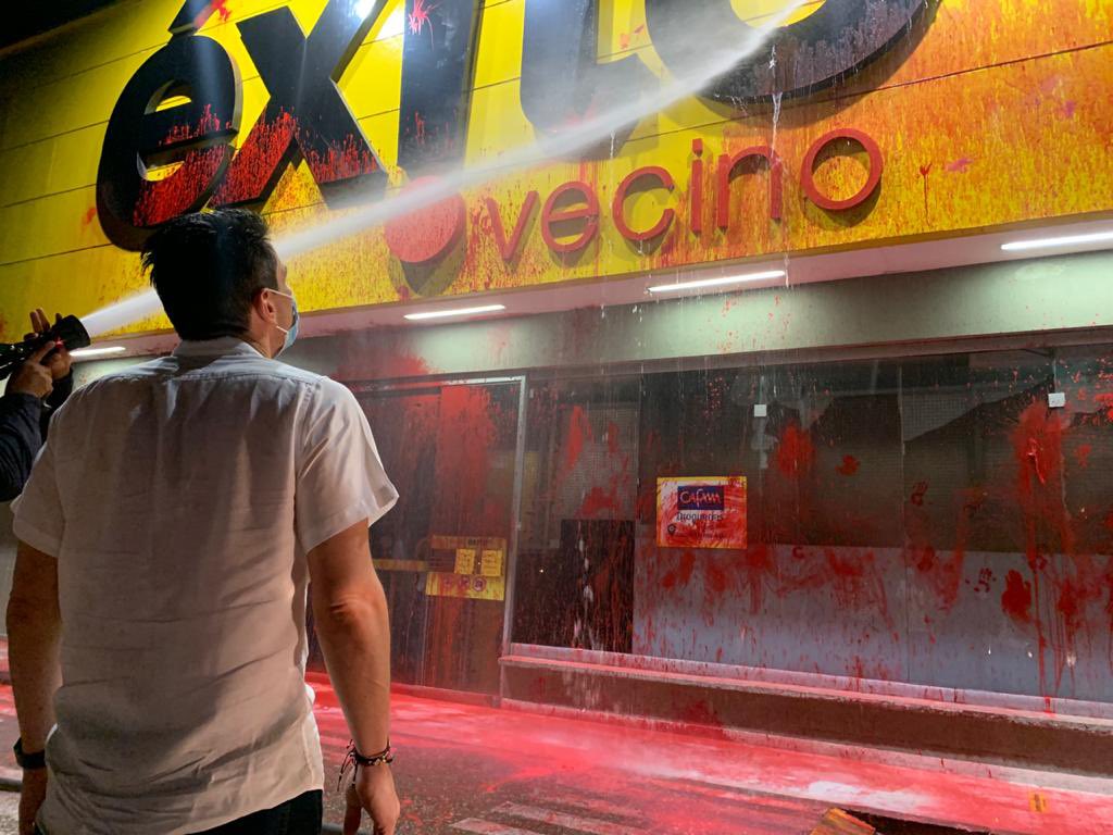 Según el reporte fueron afectados bienes públicos como paraderos y bienes privados como los vidrios que cubren los cajeros automáticos y la fachada de los centros comerciales Éxito norte y el ubicado en el centro.