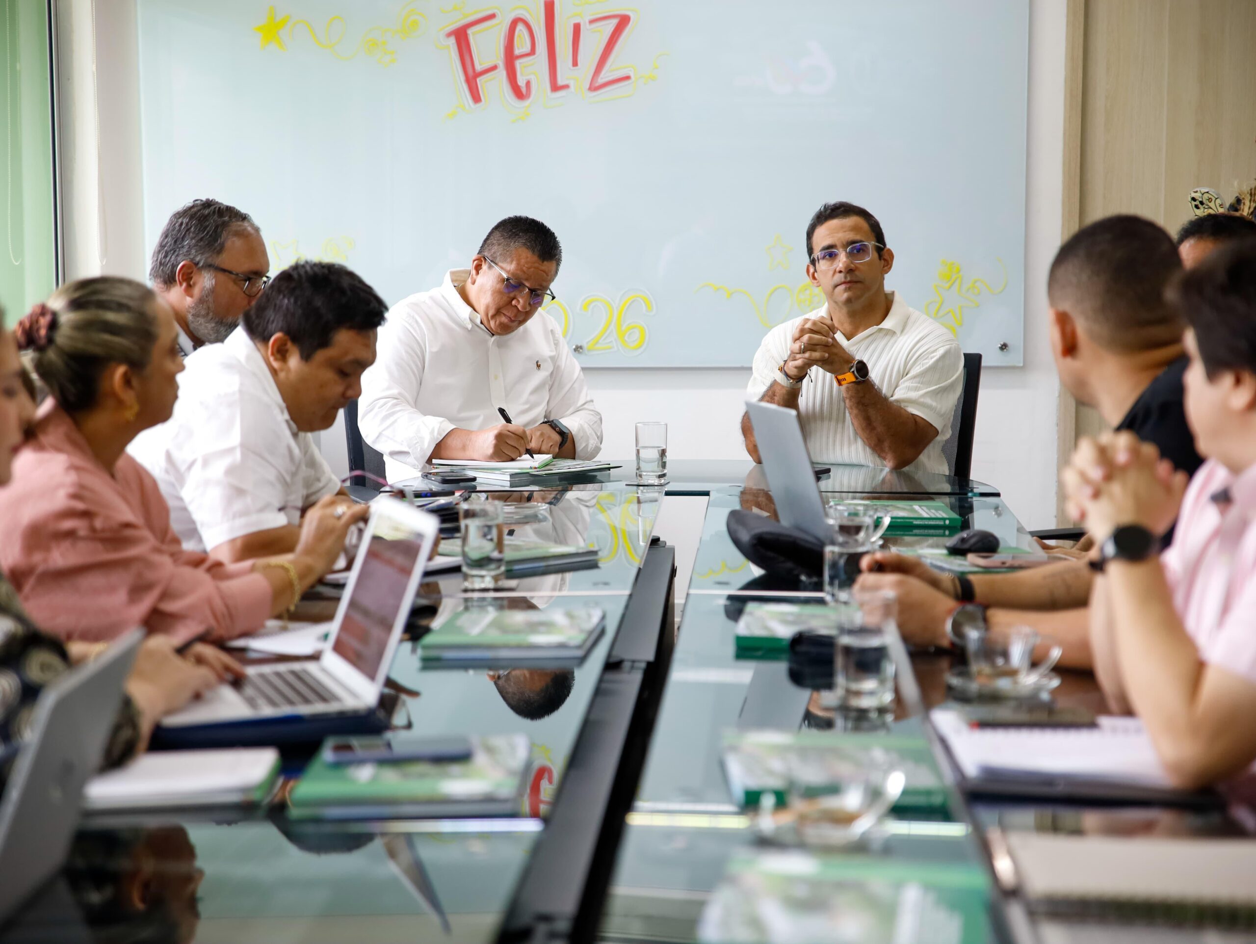 Montería, 15 de enero de 2026. El alcalde de Montería, Hugo Kerguelén García, y el rector de la Universidad de Córdoba, Jairo Torres Oviedo, sostuvieron una reunión de trabajo con sus respectivos equipos técnicos y académicos, con el propósito de articular acciones estratégicas que fortalezcan el acceso a la educación superior, amplíen la oferta institucional en el sur de la ciudad y consoliden procesos de bilingüismo en el territorio.