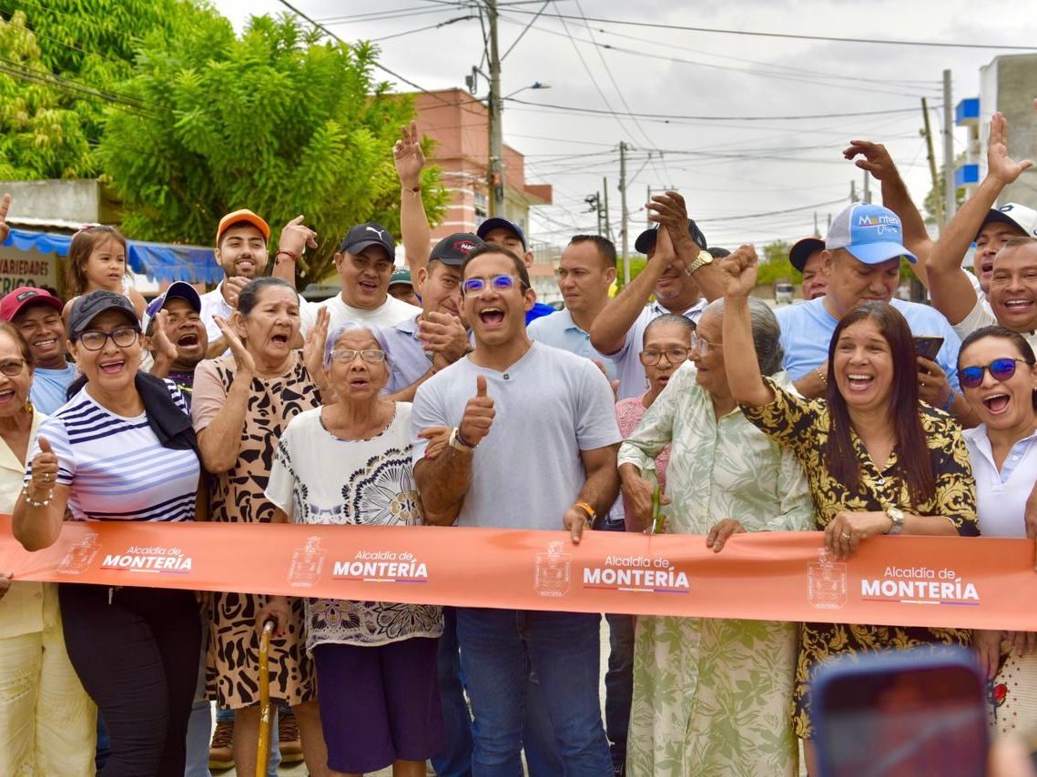 *Montería, 3 de enero de 2026.* Los habitantes del barrio Buenavista celebran la inauguración de su nuevo corredor vial sobre la carrera 4. La fiesta se armó cuando el alcalde de Montería, Hugo Kerguelén García, llegó como se volvió habitual cada sábado desde 2025, y cortó la cinta con la comunidad.