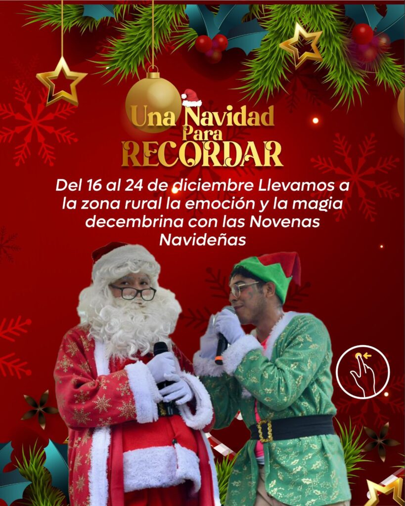 Finalmente, del 16 al 24 de diciembre, la magia decembrina llegará a la zona rural con las tradicionales Novenas Navideñas, llevando alegría, unión y actividades culturales a corregimientos y veredas.