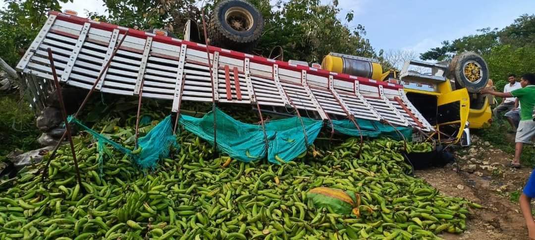 Un camión repleto de plátanos se volcó en la vereda Juantaut, corregimiento de Si se van, en Canalete, Córdoba, debido al deplorable estado de la vía rural. El vehículo perdió estabilidad mientras transitaba por uno de los tramos más dañados, lo que provocó el accidente este sabado 21 de septiembre.