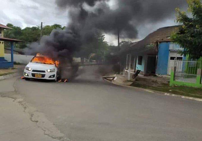 “A quienes pretenden incendiar vehículos, hemos tenido 32 vehículos incinerados en todo el territorio nacional en estos 23 municipios y en donde además hemos tenido unas obstrucciones temporales en Valdivia, en San Pedro de Urabá y en Turbo”, aseguró Palacios.