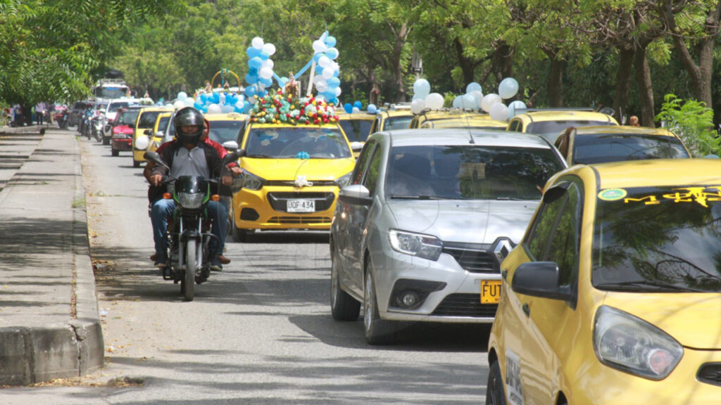 Pasadas las 11:00 de la mañana una caravana recorrió las principales calles de la capital ganadera. En los vehículos se observa la imagen de la virgen con decoraciones elaboradas con flores y bombas de colores blanco y azul.