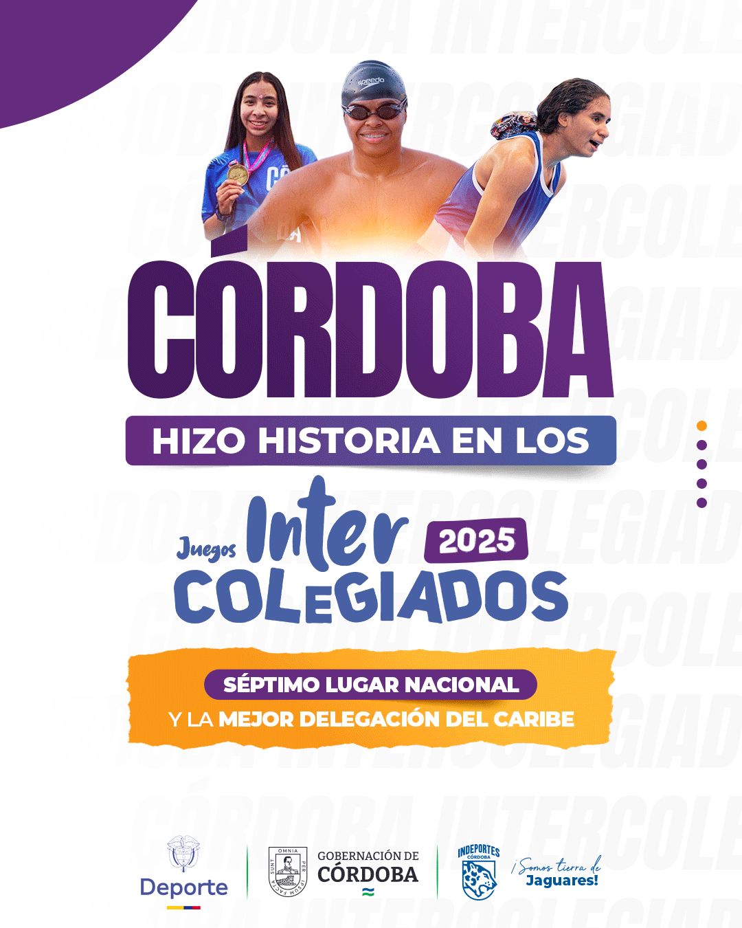 “El resultado obtenido por Córdoba en las Finales Nacionales de los Juegos Intercolegiados 2025 confirma el avance sostenido del deporte escolar en el departamento. Haber alcanzado el séptimo lugar en el país y convertirnos en la mejor delegación del Caribe es un hecho que refleja el compromiso de nuestros estudiantes, entrenadores, docentes y familias. Seguiremos fortaleciendo los procesos formativos y el acompañamiento a nuestros jóvenes, porque esta participación histórica demuestra que Córdoba tiene presente y futuro en el deporte”, indicó el mandatario departamental.