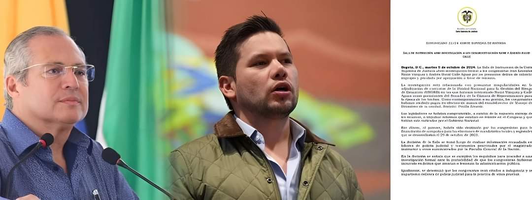 La Sala de Instrucción de la Corte Suprema de Justicia ha abierto una investigación penal contra Iván Name y Andrés Calle, expresidentes del Senado y la Cámara de Representantes, respectivamente, por su presunta implicación en actos de corrupción relacionados con el saqueo a la Unidad Nacional de Gestión del Riesgo de Desastres (Ungrd).