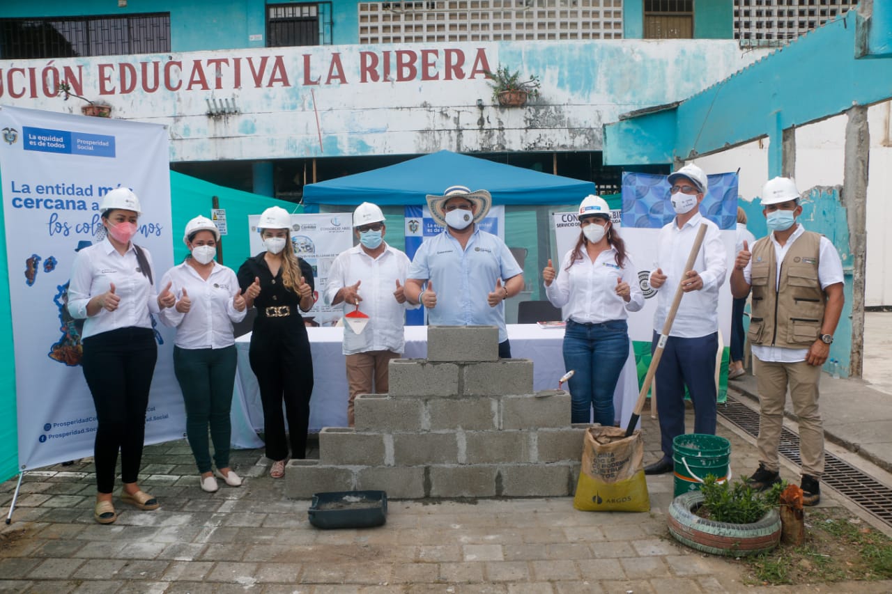 El gobernador de Córdoba Orlando David Benítez Mora y la directora del Departamento de Prosperidad Social para el departamento Calara Ramos, presidieron la mañana de este jueves 21 de noviembre, el acto simbólico de colocación de la primera piedra de las obras de infraestructura educativa que se adelantarán en las Instituciones Educativas La Rivera, Camilo Torres y Antonio Nariño de la ciudad de Montería.