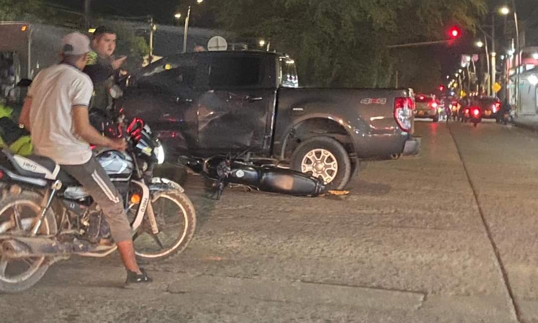 Un grave accidente de tránsito se presentó la noche de este miércoles en la calle 41 con carrera 8 en Montería. Según los reportes, una camioneta arrolló a un motociclista, con tal fuerza que el conductor de la moto quedó atrapado debajo del vehículo.