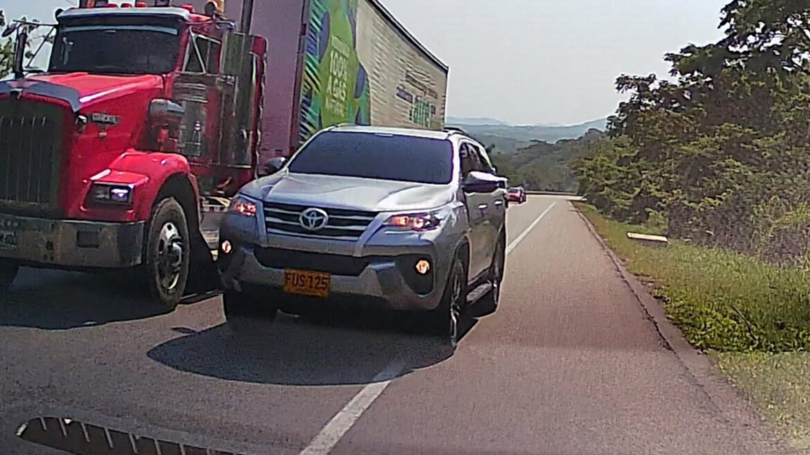 El caso fue denunciado en redes sociales por el conductor del vehículo que tuvo que frenar y casi que salirse de la vía para no chocar de frente por la camioneta de placas FUS 125, que se movilizaba por el carril contrario sobrepasando en doble vía.