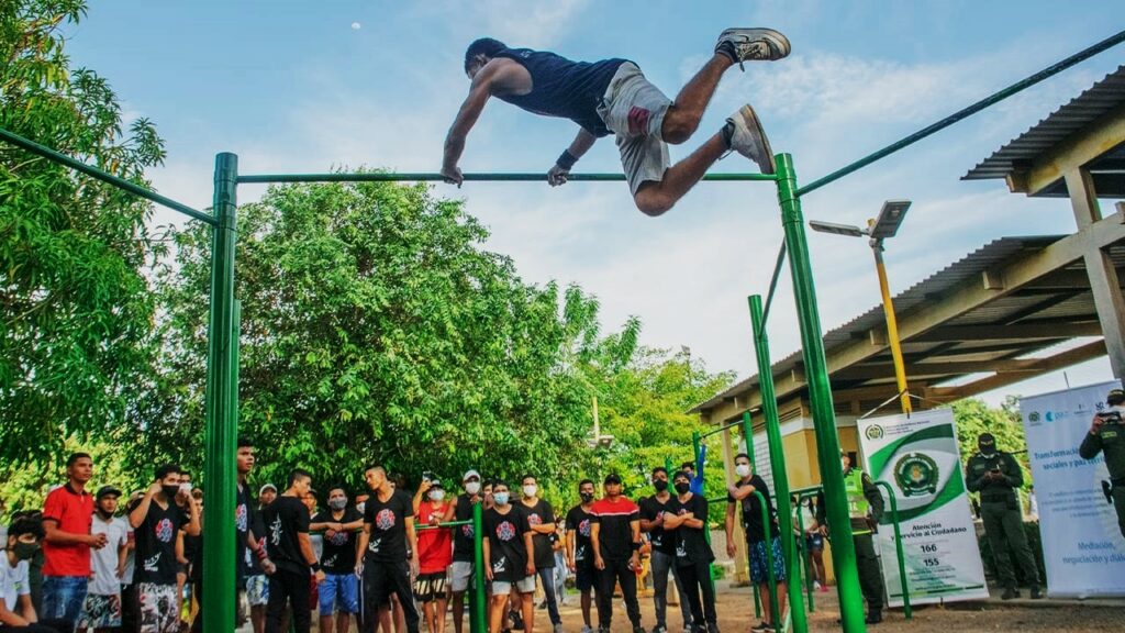 En un trabajo conjunto entre la Policía Nacional y la Alcaldía de Montelíbano, quedó inaugurado este domingo el primer parque de Calistenia del municipio, ubicado  en el parque Bernardo Ospina.