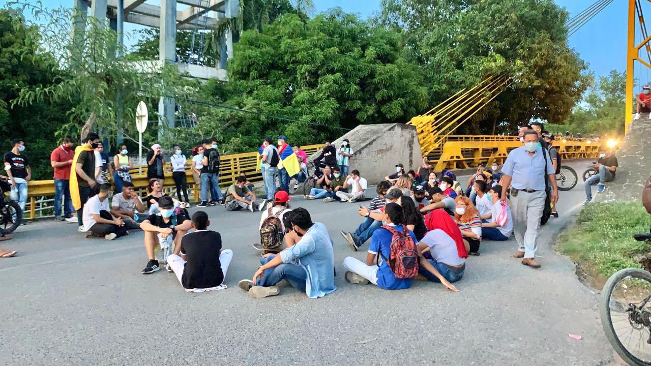 Varios jóvenes se apostaron a inmediaciones del Puente Metálico de la ciudad de Montería, dónde pasado los minutos se generó un bloqueo por parte de los mismos en dicho lugar.