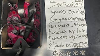 A la prisión llegó una caja que adentro tenía pétalos de rosas, cinco calaveras metálicas y un panfleto sin firma que decía lo siguiente: “Señores guías caninos, sigan operando que para ustedes también hay. Los tenemos vigilados y también tenemos poder”.