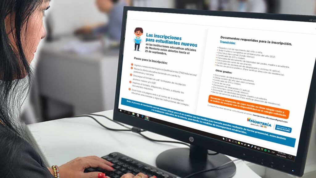 La Secretaría de Educación de Montería ha dispuesto de una sección virtual para que los padres de familia pueden diligenciar la inscripción de los niños, niñas y adolescentes para el año escolar 2021.