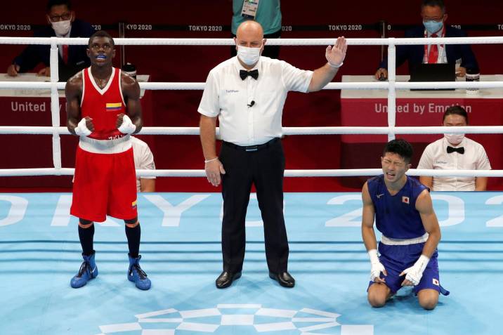 Yuberjén Martínez fue la última esperanza de medalla del boxeo colombiano. Se enfrentó al local Ryomei Tanaka en los cuartos de final de la división 52 kilogramos, quien lo venció con una puntuación de 4-1 a su favor.