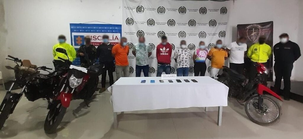 Se adelantaron siete (07) diligencias de registro y allanamiento en los municipios de Montería y San Antero – Córdoba, en las diligencias de registro y allanamiento, se logró la incautación de 8 teléfonos celulares, 01 motocicleta y listados donde aparecen registrados los establecimientos comerciales y empresas de transporte que realizan el pago de cuotas extorsivas a este grupo delincuencial.
