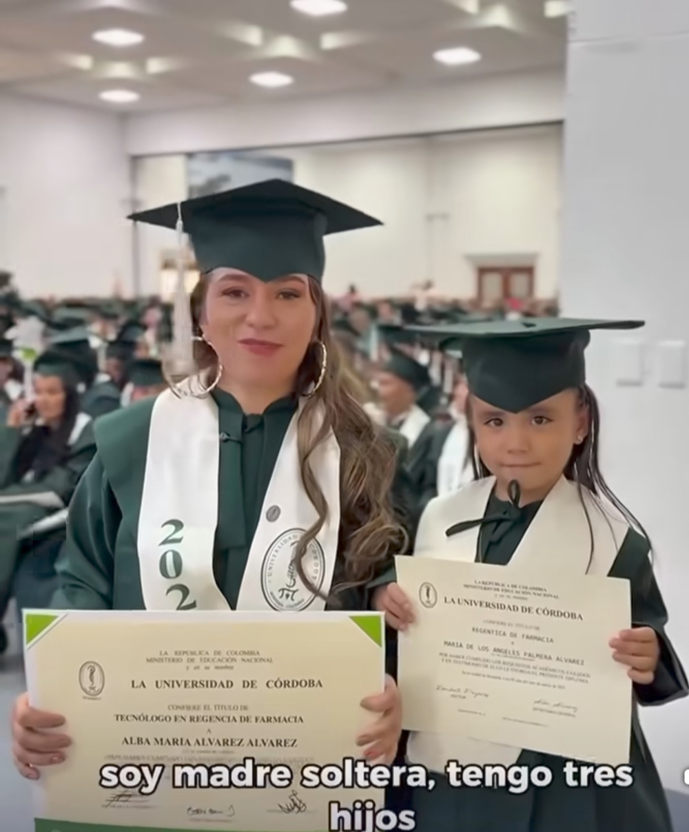 La perseverancia, el amor por sus hijos y la voluntad de salir adelante fueron los pilares que llevaron a Alba María Álvarez Álvarez a obtener su título como Tecnóloga en Regencia de Farmacia en la Universidad de Córdoba. Durante la ceremonia realizada en el Centro de Convenciones de Montería, Alba recibió su diploma, pero no lo hizo sola: su hija María De Los Ángeles Palmera Álvarez, de 5 años, estuvo a su lado, como lo estuvo durante todo el camino académico de su madre.