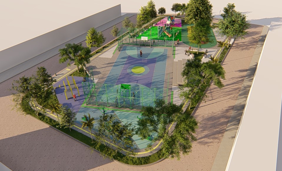 El proyecto del nuevo espacio público estará ubicado en la calle 24 y carrera 44 con carreras 42 A y 42 B, en el barrio Villa Caribe que pertenece a la comuna 6 la ciudad. Dentro de los componentes que se contemplaron: áreas de juegos infantiles, pista de patinaje, plazoleta y senderos, gradería, cancha polideportiva, área de módulos de calistenia, gimnasio al aire libre, anden perimetral con dos rampas de acceso.