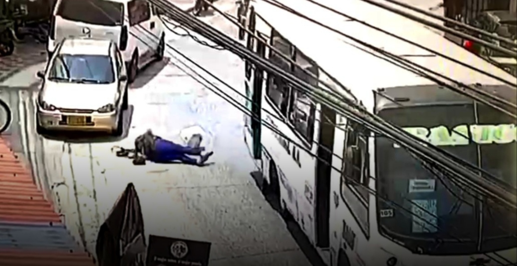 En el clip se ve la forma violenta en la que una mujer sale disparada por la puerta trasera de una buseta de servicio público.