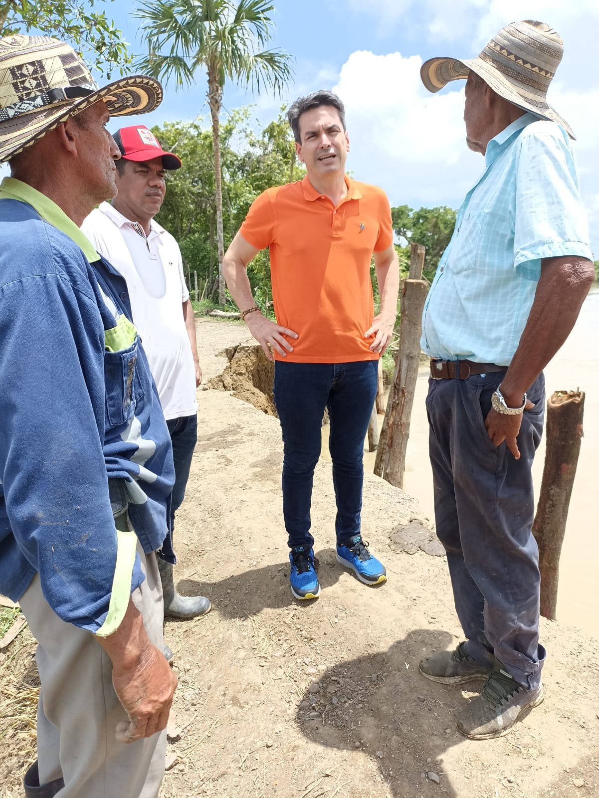 Montería, 15 de mayo de 2022- El alcalde de Montería, Carlos Ordosgoitia Sanin, se desplazó a la vereda Costa de Oro, en el corregimiento de Tres Piedras, para atender a la comunidad afectada. Además a la zona llegó maquinaria para adelantar trabajos de mejoramiento de la vía que se encuentra erosionada y sirve, en este momento, como camellón para evitar que el agua del río se desborde.