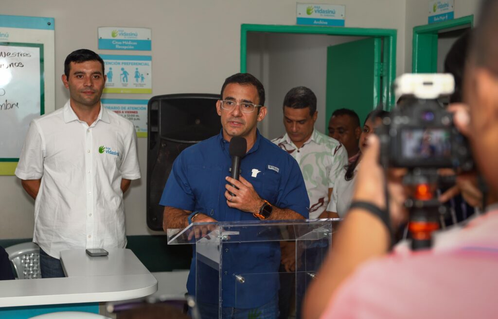 En el acto de inauguración de la sala de procedimientos en El Sabanal, el mandatario estuvo acompañado por la secretaria de Salud (e), Lilian Ramírez Berrío, y la gerente de la ESE Vidasinú, Liliana Yúnez Luqueta, además de usuarios y funcionarios del centro de salud.