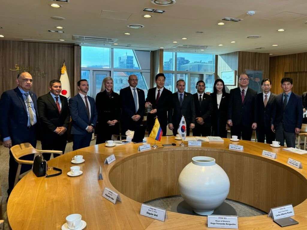 Seúl, Corea del Sur, 26 de febrero de 2024. En el ayuntamiento de Seúl se llevó a cabo la reunión entre los alcaldes de la Misión a Corea y su par de Seúl, Oh Se-hoon. El alcalde de Montería, Hugo Kerguelén García, manifestó: “Compartimos experiencias y el alcalde de Seúl nos contó los desafios que han tenido y lo que estan haciendo para proyectar la ciudad en cuanto al ordenamiento del territorio”.