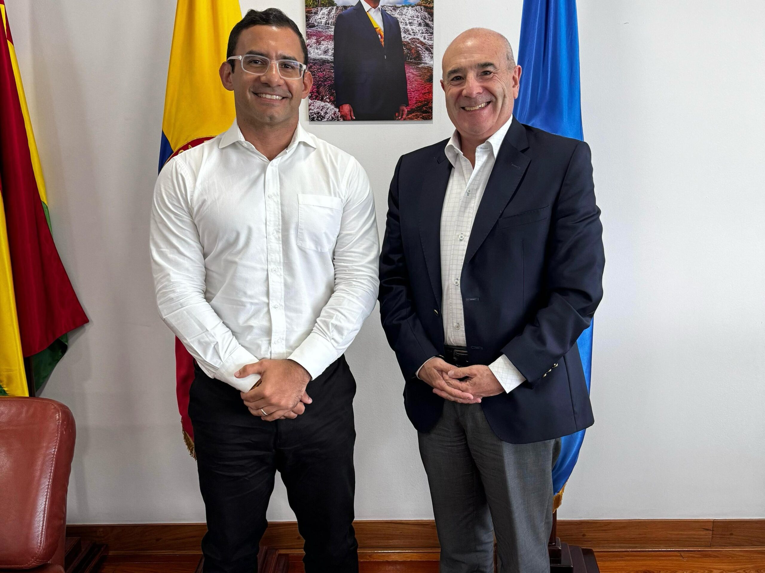 Bogotá, 20 de febrero de 2024. El alcalde de Montería, Hugo Kerguelén García, se reunió con el director de la Aeronáutica Civil, Sergio París Mendoza, para tratar varios temas importantes concernientes al aeropuerto Los Garzones y el impulso del turismo en Montería.