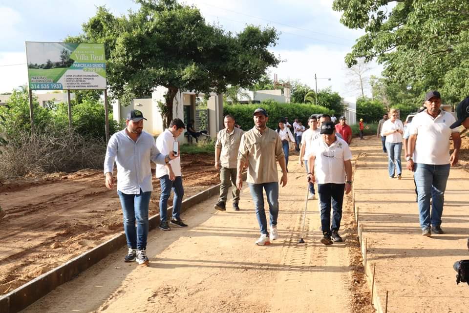 El alcalde de Sahagún Jairo Balmaceda y el Gobernador Erasmo Zuleta, inspeccionaron los avances de 1.4km de pavimento rígido en la vía La Floresta. La obra tiene una ejecución del 60% de ejecución.