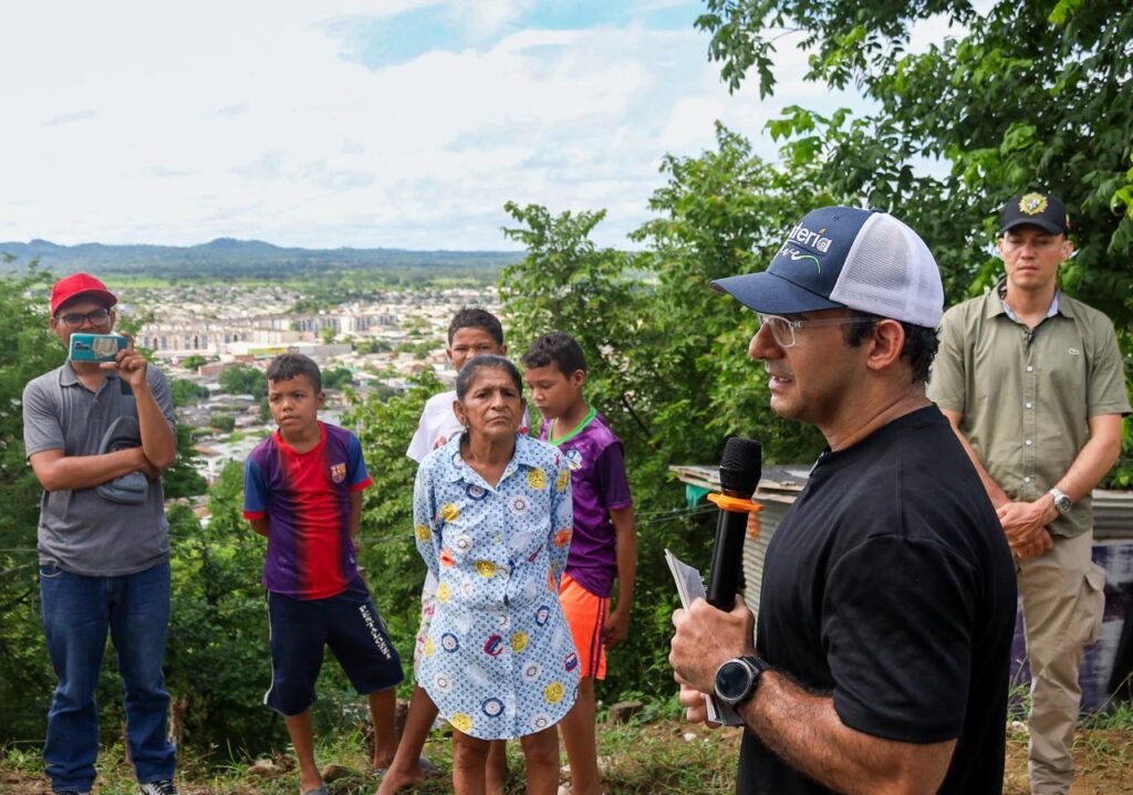Montería, 29 de junio de 2024. El alcalde Hugo Kerguelén García recorrió hoy parte del sector El Cerro, al sur de la ciudad, donde están asentadas centenares de familias desde hace años, pese a ser considerada una zona no habitable por la inestabilidad del terreno.