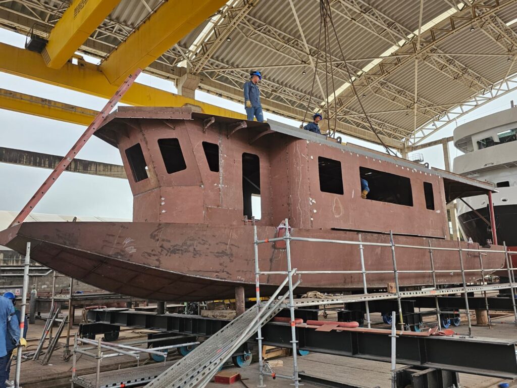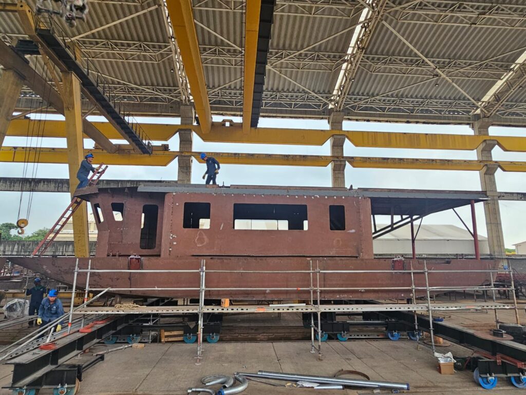 Montería, 24 de agosto de 2025. El proyecto de movilidad sostenible Businú sigue tomando forma con importantes avances en la construcción de sus dos embarcaciones en el astillero Cotecmar.
