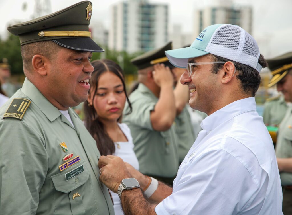 El mandatario hizo entrega de la medalla al mérito Policial y Militar “Alejandro Navas Ramos” a 50 miembros de la Policía Metropolitana, y honró la memoria de los policías que han caído en el cumplimiento de su deber, así como a todos los policías de la Policía Metropolitana y sus familiares, quienes se han destacado por el cabal cumplimiento de sus deberes como servidores públicos, el acatamiento de la constitución y las leyes colombianas y el respeto por los derechos y garantías de los ciudadanos, protegiendo la vida y la tranquilidad de los monterianos.