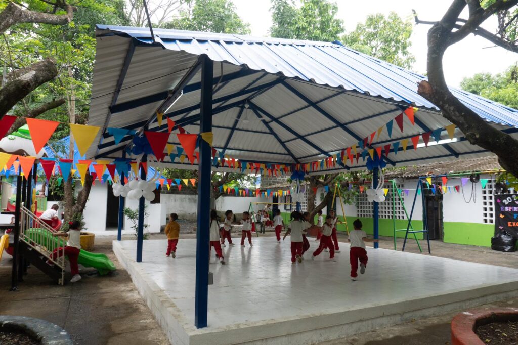 De esta manera, se definieron las obras que recibió la comunidad educativa, esta mañana; además de un aula, dos nuevos ambientes de aprendizaje, es decir, espacios donde los niños comparten en actividades recreativas y pedagógicas, lo que se conoce como patio-salón.