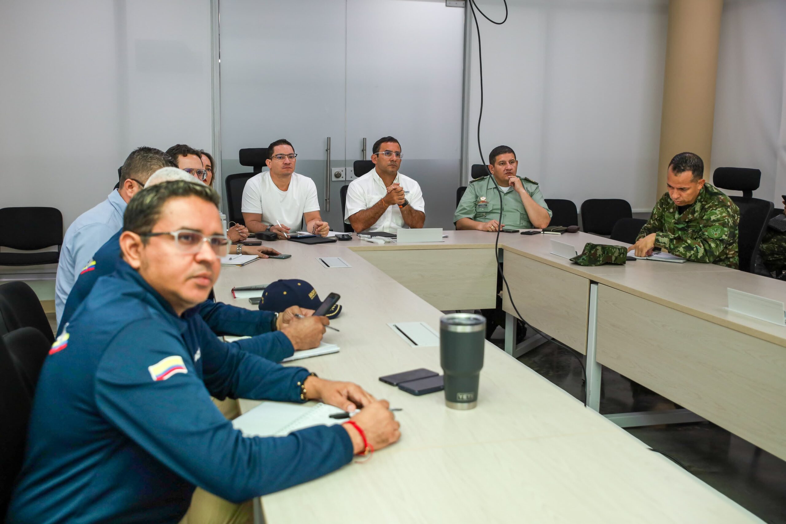«Nuevamente nos reunimos con miembros de la Fuerza Pública y el secretario de Gobierno, Antonio Sierra, para articular esfuerzos y fortalecer la seguridad en el territorio, además de analizar los recursos que hay disponibles para invertir en seguridad y sacar adelante proyectos que incidan e impacten para seguir contrarrestando hechos delictivos», indicó el mandatario.