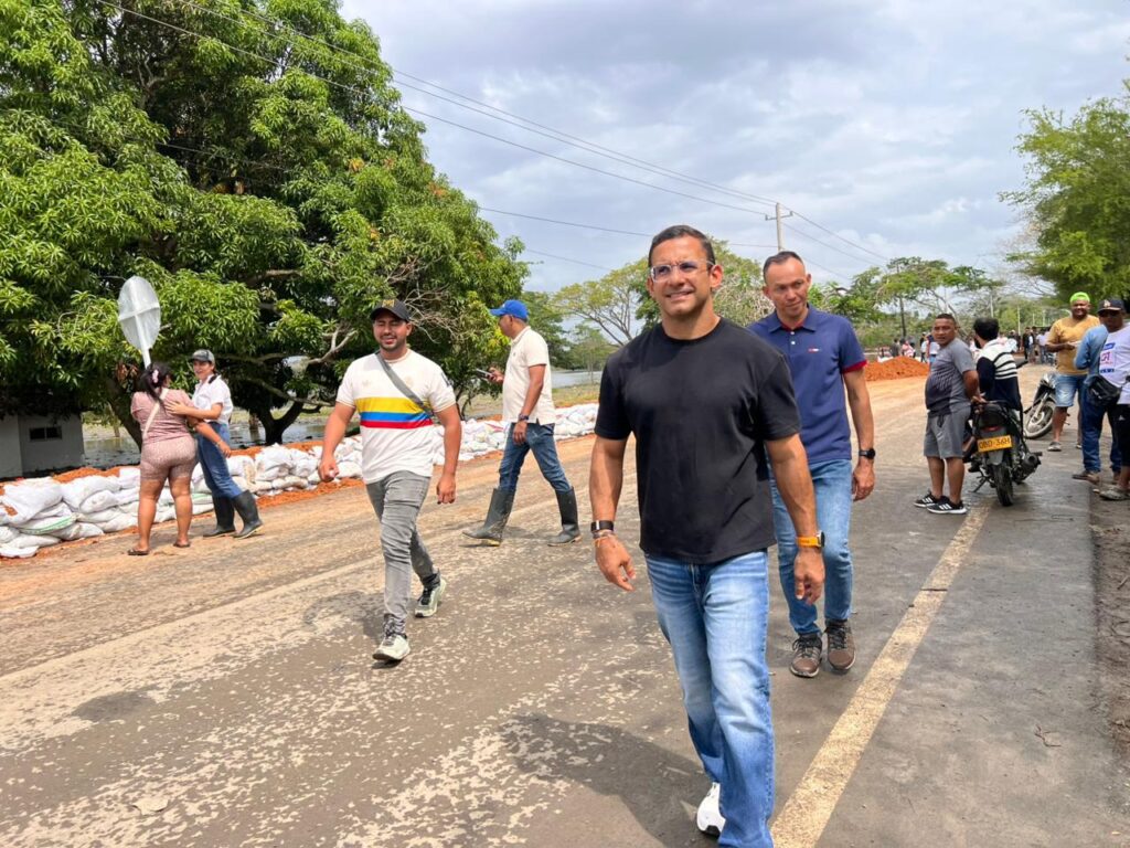 Desde tempranas horas, el mandatario ha estado en terreno, inspeccionando los trabajos de contención que se ejecutan en la troncal que conduce desde la glorieta de la salida a Arboletes hasta el Puente Metálico, una zona estratégica para evitar que las aguas sobrepasen la vía y se desplacen hacia la orilla del río Sinú, afectando barrios de la margen izquierda.
