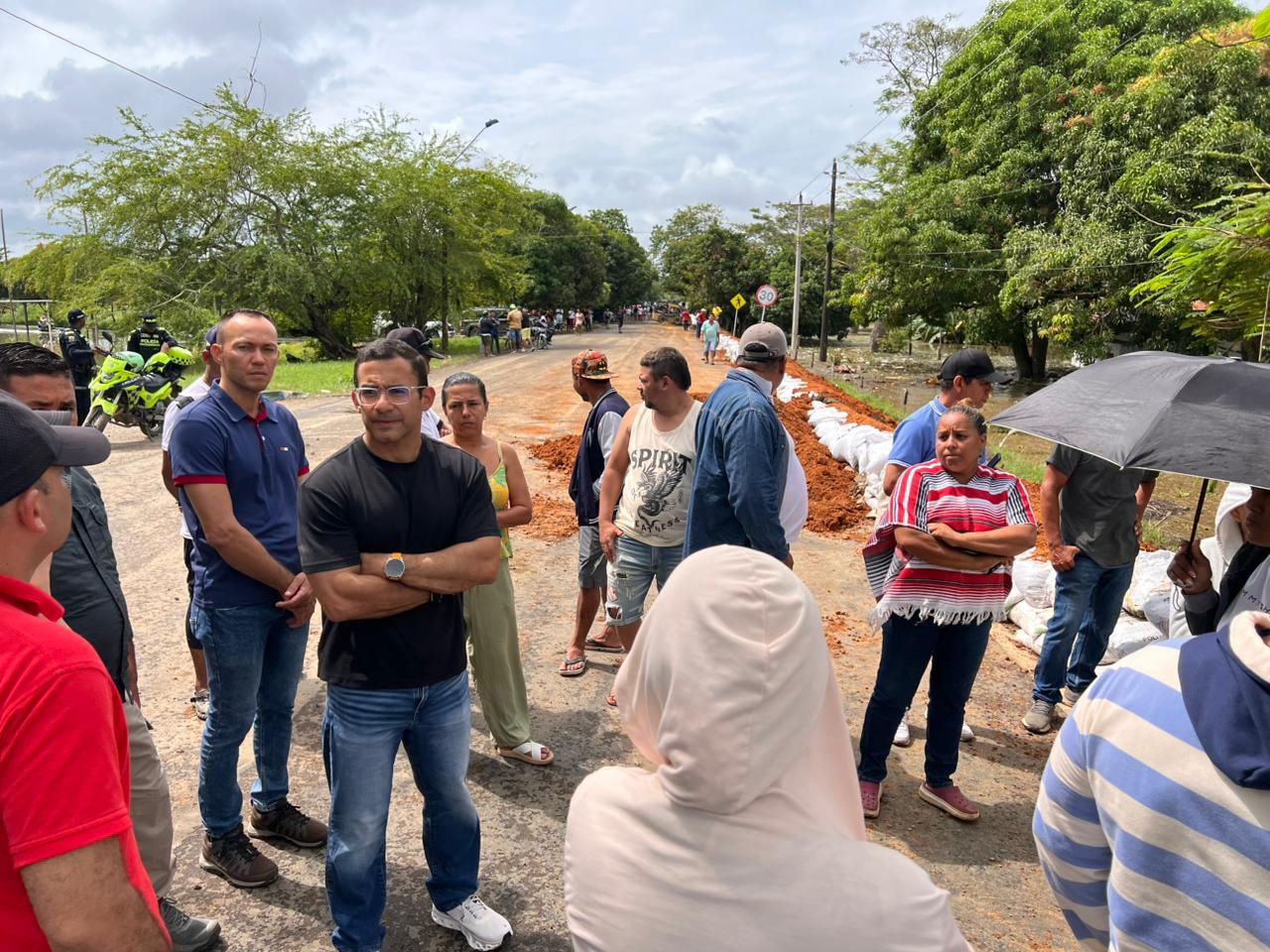 Durante dos días consecutivos, la comunidad, funcionarios de la Alcaldía, así como miembros del Ejército Nacional y la Policía, han trabajado de manera articulada en la construcción de barreras con sacos llenos de material, utilizando palas y minicargadores para su instalación. Labor conjunta que ha permitido reforzar el muro de contención y disminuir el riesgo de desbordamiento hacia sectores urbanos.