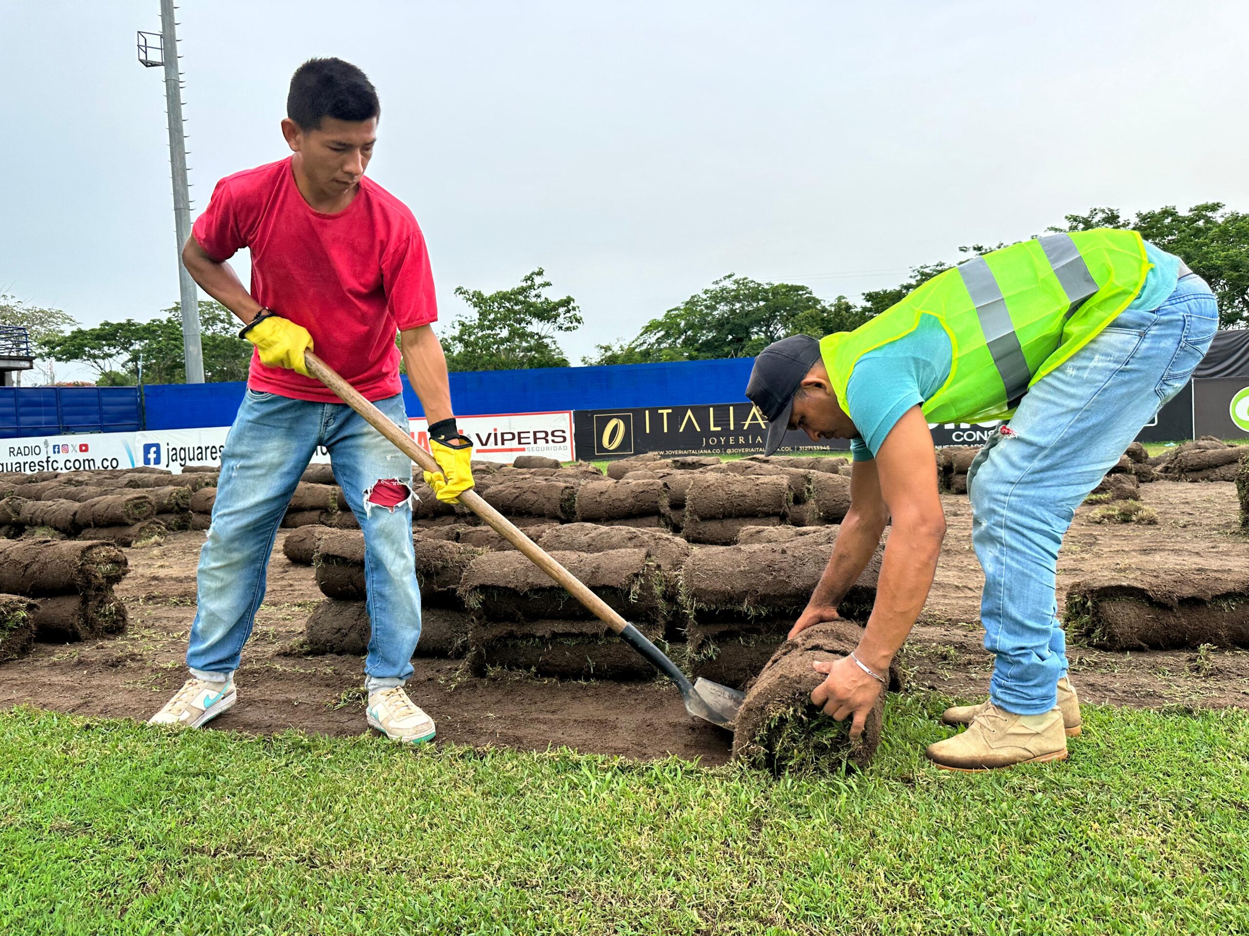 Se va a sembrar pasto Bermuda 419, el que inicialmente tenía el estadio, cuando se inauguró en 2012. Luego de 12 años, debido a factores externos, las condiciones del césped no son las mejores. La ubicación del estadio, que está rodeado de fincas, facilitó la contaminación de la grama con otras especies de plantas y, hoy día, hay diferentes tipos de maleza y de grama en el estadio. Además, de que la grama está muy pesada y compactada, razón por la que se cambiará en su totalidad para tenerla en óptimas condiciones y así jugar fútbol de la mejor manera.