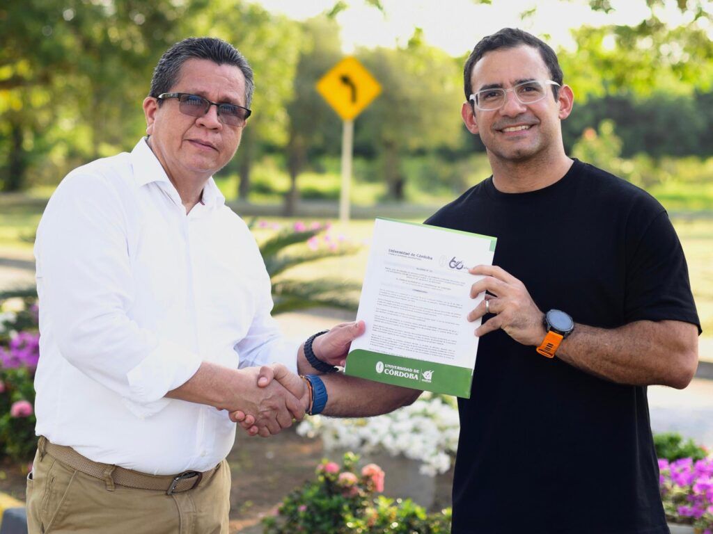Montería, 14 de enero de 2025. «Con este acuerdo estamos mandando el mensaje de que la academia y el municipio queremos construir una sola ciudad», dijo el alcalde Hugo Kerguelén García al suscribir en la tarde del lunes, en la firma del acuerdo Córdoba Educada entre la Alcaldía de Montería y la Universidad de Córdoba, a través del cual se establece el proceso para que los mejores estudiantes de las pruebas Saber 11 accedan a los programas de la Unicórdoba.
