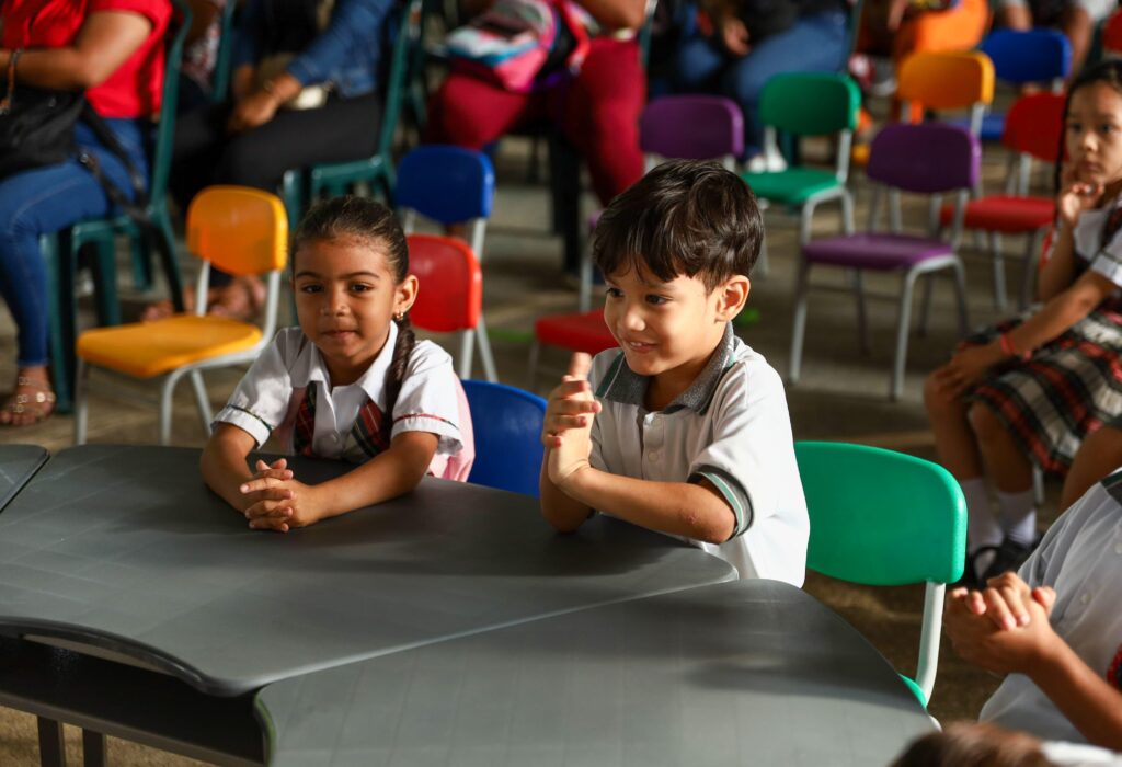 Kerguelén García recordó el avance de este programa de dotación de instituciones educativas: “Cuando llegamos al cargo, el pasado 1 de enero, teníamos establecida la meta de 80.000 matrículas, y empezamos con la campaña ‘Vamos todos pal colegio’; entonces, muchos rectores me dijeron: ‘Alcalde, no tengo dónde sentar a los niños, hay muchos a quienes les toca ver clases sentados en el piso’, sobre todo en el sector rural; y nos pusimos la meta de entregar 8.000 sillas al año, para completar 32.000 sillas en el cuatrienio y así renovar el 40% de toda la matrícula. Hoy, hemos cumplido ese reto”.