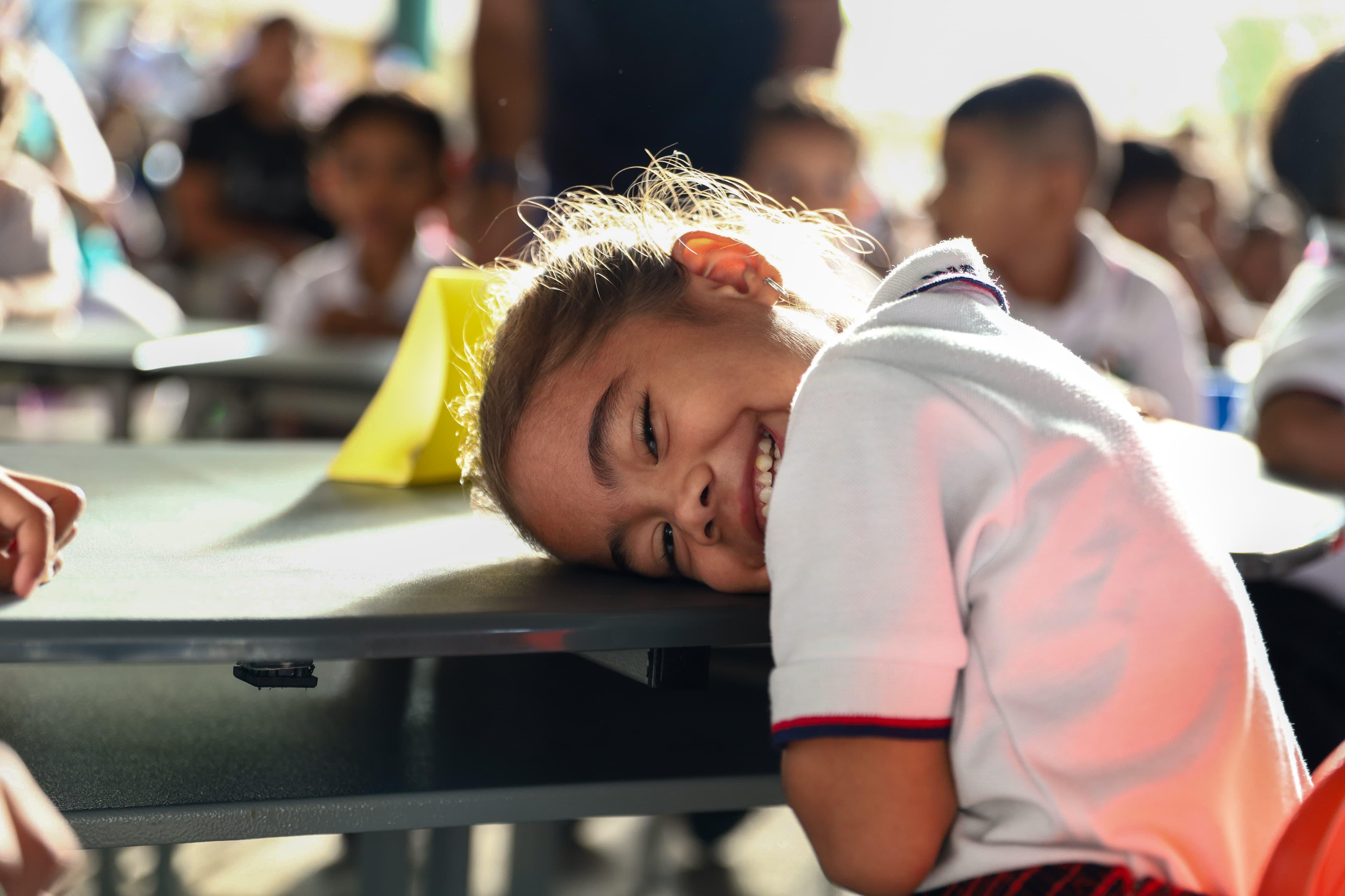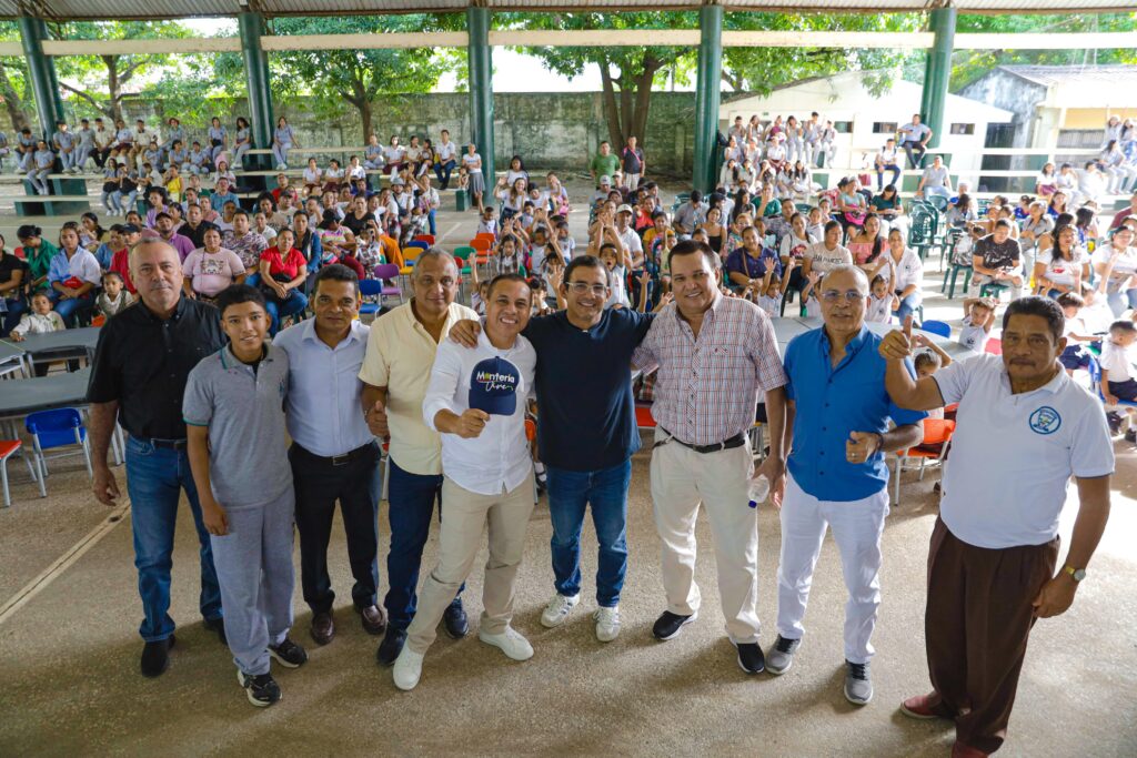 Montería, 14 de noviembre de 2024. El alcalde Hugo Kerguelén hizo entrega de 1.807 puestos escolares para estudiantes de siete instituciones educativas oficiales de Montería. De esta forma, la Administración Municipal supera la meta que se trazó de renovación de mobiliario en los planteles a su cargo, durante 2024.