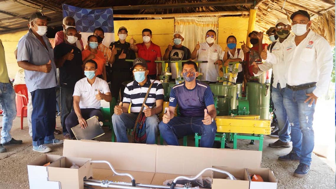 El alcalde Lormandy Martínez Durán, el secretario de Desarrollo Económico; Gabriel Calle, y la Oficina Agropecuaria Municipal, realizaron la entrega de picadoras, ensiladoras, y dos guadañas a través de la Asociación de productores agropecuarios del municipio de San Antero.