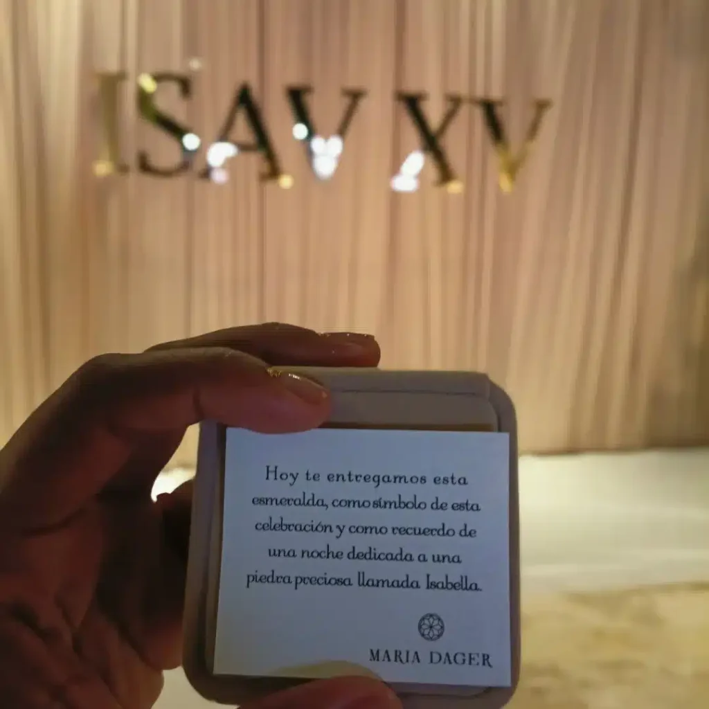 Según contó, cada invitado recibió un dije con esmeralda para usar en una cadena, acompañado de un mensaje simbólico. La influenciadora señaló que el detalle representaba prosperidad y abundancia, y que buscaba convertirse en un recuerdo especial de la celebración de los 15 años de Isabella Valdiri. El gesto rápidamente se volvió viral y alimentó el debate en redes sobre el nivel de lujo del evento