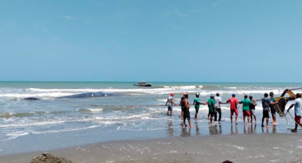El peso y el tamaño impidieron que la ballena que se varó en inmediaciones del corregimiento Cristo Rey del municipio de Puerto Libertador fuera re-sumergida en el mar o extraída completamente.