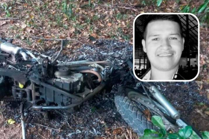 El cuerpo del uniformado lo hallaron a eso de las 8 a. m. junto a su moto particular incinerada en una vía nacional del departamento del Cesar.