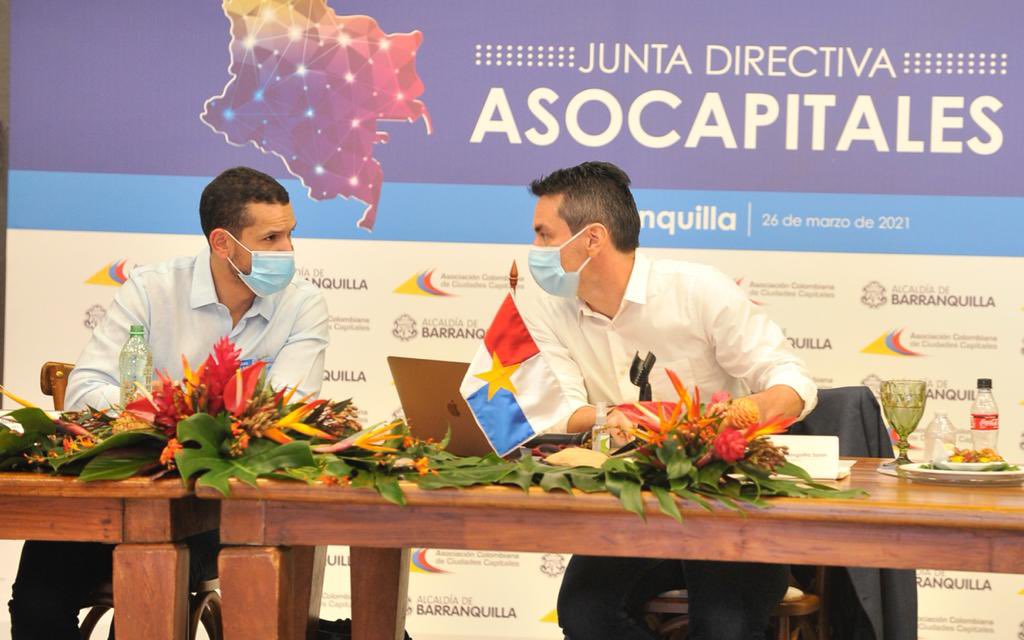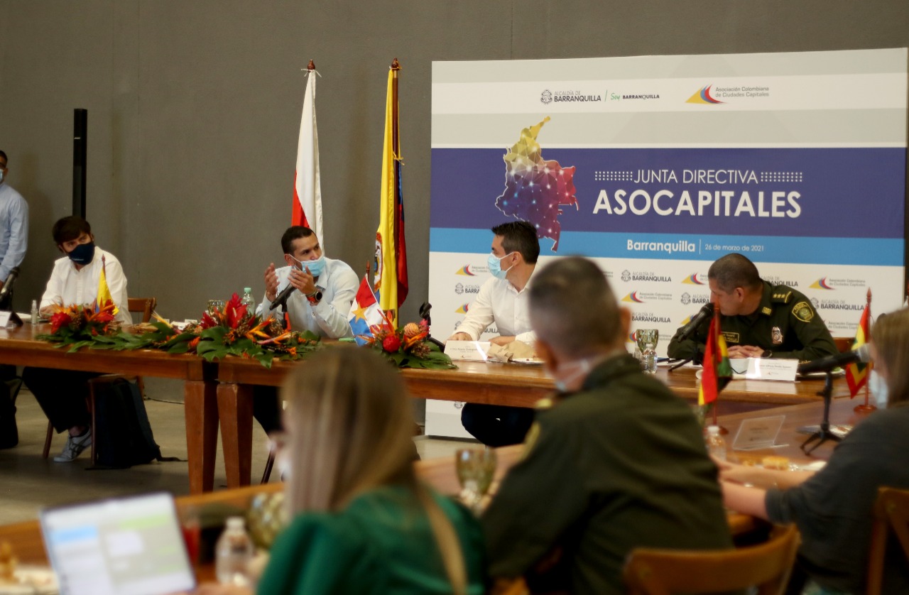 Montería, 27 de marzo de 2021- Durante la junta directiva de Asocapitales que contó con la participación del Ministro del Interior, Daniel Palacios Martínez y el Subdirector General de la Policía Nacional, Mayor General Hoover Alfredo Penilla Romero, los alcaldes y la directora ejecutiva de Asocapitales, Luz María Zapata, dialogaron sobre los retos que impone la lucha contra el microtráfico como un fenómeno criminal que requiere la intervención de las autoridades en las zonas de más alto riesgo en las ciudades capitales y la definición de estrategias conjuntas entre Fiscalía General, Ministerios de Defensa e Interior, Policía y Ejército Nacional.