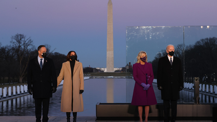 Pero Biden visitó, junto a la vicepresidenta electa Kamala Harris, el estanque de una explanada prácticamente vacía debido a las restricciones por la COVID-19 y al aumento de la seguridad tras el asalto al Congreso del 6 de enero.