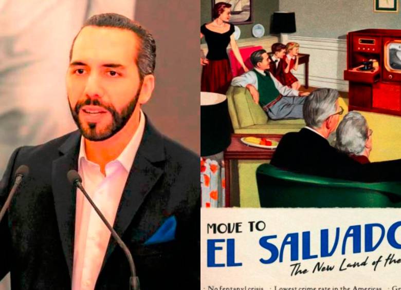 Una publicación en Twitter del presidente de El Salvador, Nayib Bukele, se ha hecho bastante polémica. El mandatario compartió un cártel parecido al de las campañas de los años 70, en el que una familia ve la televisión, mientras aparece un hombre surfeando una ola, y en ella se puede leer el nombre del país que gobierna.