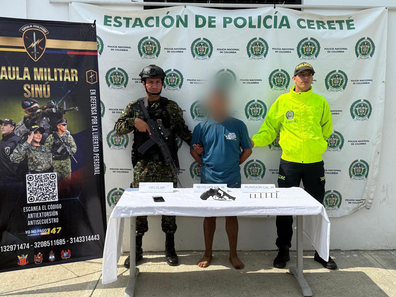 Ciénaga de Oro. La Policía Metropolitana de Montería, en un trabajo articulado con el GAULA Militar, asestó un importante golpe contra la delincuencia en el municipio de Ciénaga de Oro, con la captura de alias «Andru», señalado cabecilla de zona y determinador de extorsiones en la región.