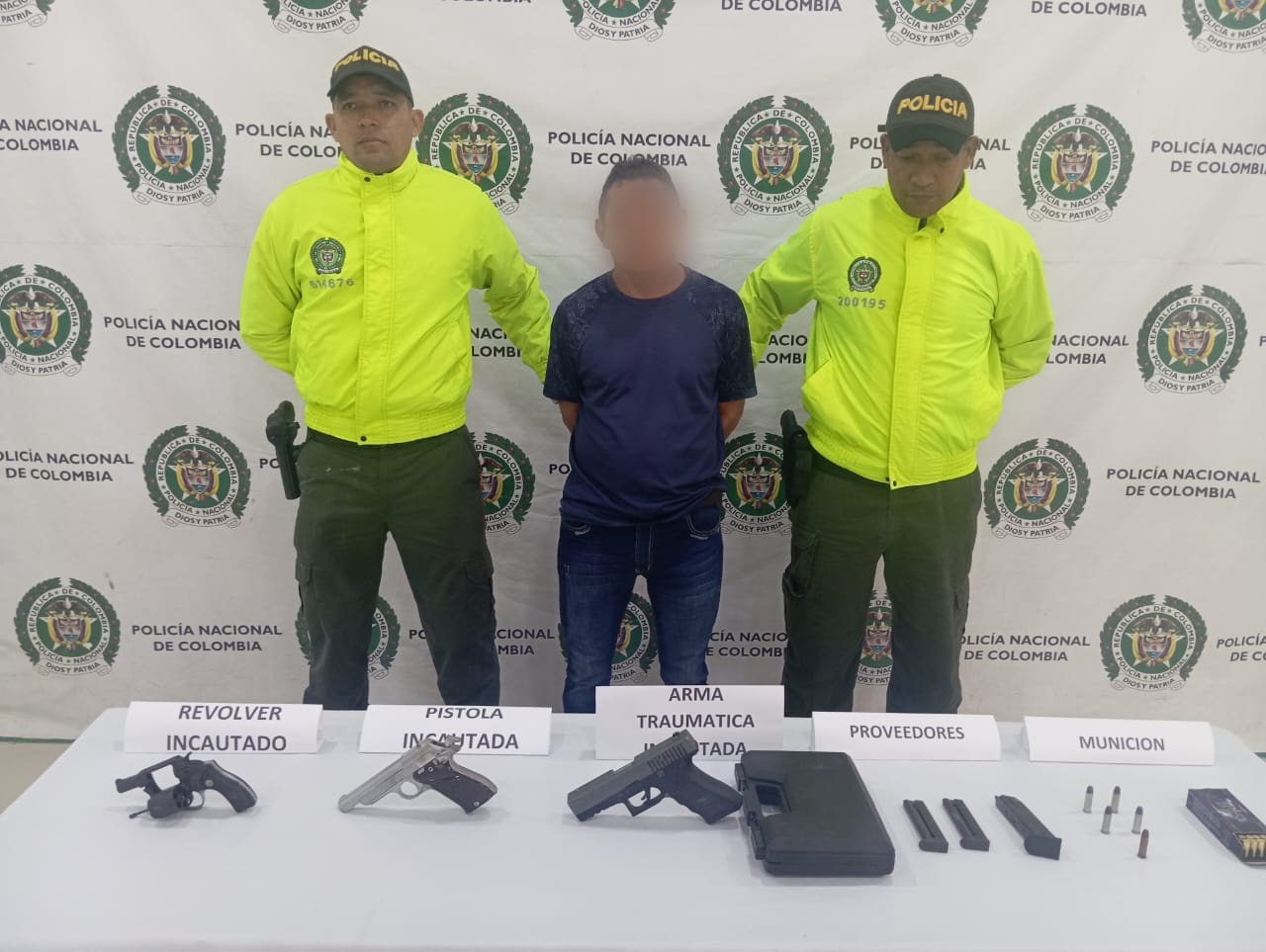 La captura del hombre se registró en el sector de Los Garzones, en una actividad judicial realizada de forma coordinada entre la SIJIN y la Fiscalía General de la Nación, logrando la incautación de varias armas de fuego y munición de diferentes calibres.