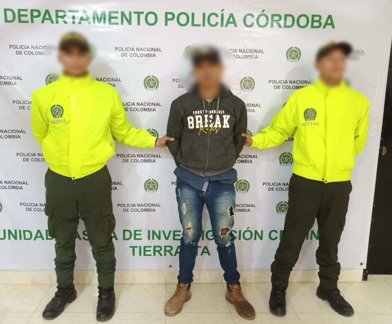 La actividad de policía se materializó, mediante diligencia de allanamiento y registro a un bien inmueble ubicado en el barrio El Prado de Tierralta. En el sitio, los uniformados lograron capturar al sujeto, quien era requerido desde el mes de mayo por el Juzgado primero penal municipal ambulante con función de control de garantías de Montería, por los delitos de homicidio agravado, concierto para delinquir agravado y fabricación, tráfico, porte o tenencia de armas de fuego y municiones.