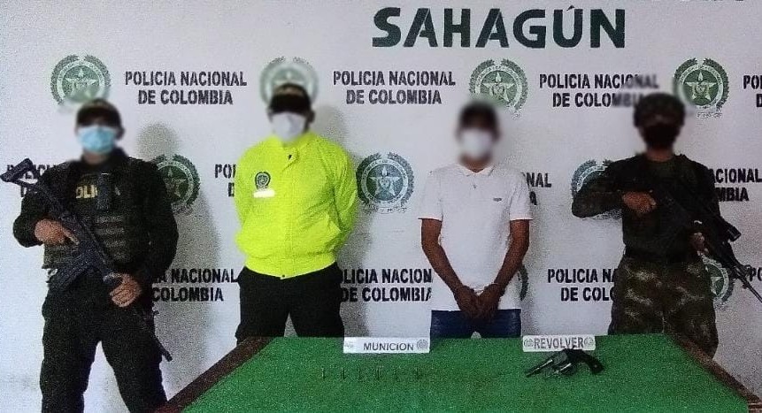 El resultado operacional se llevó a cabo en el barrio La Alpujarra del municipio de Sahagún. En el lugar, los uniformados mediante diligencia de registro y allanamiento lograron sorprender al sujeto, con un arma de fuego tipo revólver, marca Ruby, calibre 38mm, con seis cartuchos para la misma.