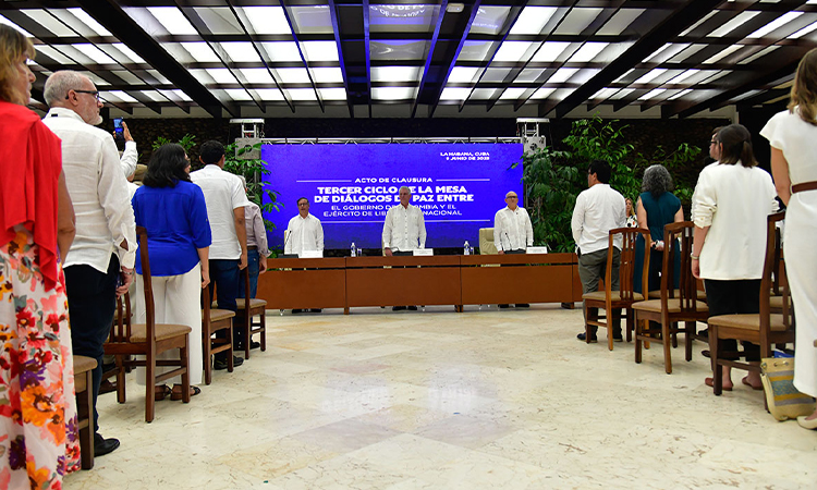 También que no se detendrán las labores de inteligencia en el territorio nacional por el Ejército, en especial para hacer respetar los protocolos de la tregua, y el tercer punto es que la ciudadanía debe tener conciencia de lo que se acordó en La Habana porque “tendremos oportunidad de poner esto ante la opinión nacional e internacional del cumplimiento de la ley, del acuerdo y de la responsabilidad de las acciones que cometen las partes”, afirmó Romero.Imágenes del encuentro privado entre el Presidente Gustavo Petro y la delegación del equipo negociador con el ELN donde declararon cese al fuego. Presidencia.